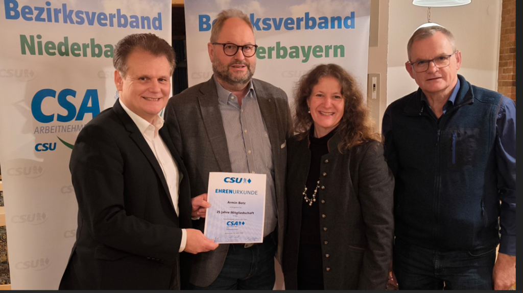 Antretter freute sich, dass der Ende 2024 vorgebrachte niederbayerische CSA-Antrag hinsichtlich der Senkung der Führerscheinkosten sich in Teilen im Vorhaben der Regierung wiederfindet. Es handelt sich dabei um eine duale Ausbildung, das heißt, dass ein Fahrschüler mit einem Begleiter, wie z.B. einem Elternteil, praktische Fahrkenntnisse außerhalb der Fahrschule erwirbt und dadurch Fahrlektionen, wie in Österreich, verkürzt werden. Dies spart Führerscheinkosten. In der CSA-Bezirksvorstandssitzung wurde auch der langjährige CSA-Bezirkskassierer, Armin Betz, für 25 Jahre Mitgliedschaft geehrt.